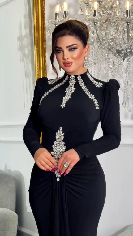 Zena Fashion Hakim Yaka Taş Detaylı Özel Koleksiyon Abiye Siyah