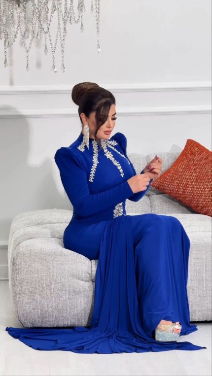Zena Fashion Hakim Yaka Taş Detaylı Özel Koleksiyon Abiye Saks