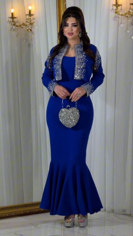 Zena Fashion Taş Baskı Detaylı Ceketli Kalem Abiye Elbise Saks