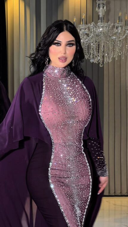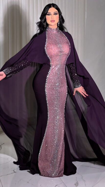 Zena Fashion Taş Baskı Pelerinli Tesettür Abiye Elbise Mor