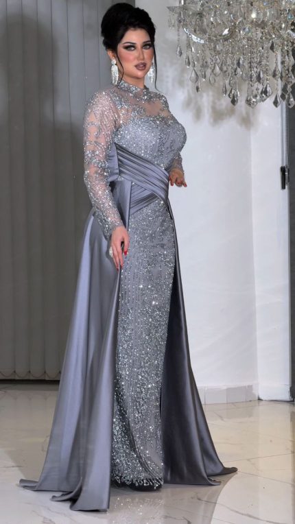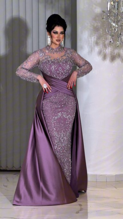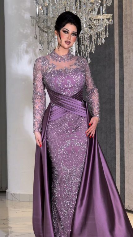 Zena Fashion Taş boncuk İşlemeli Yaka Detaylı Abiye Lila