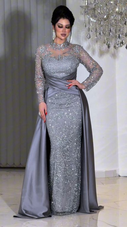 Zena Fashion Taş boncuk İşlemeli Yaka Detaylı Abiye Beyaz
