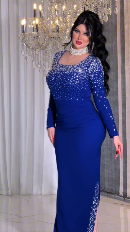 – Zarif kare yaka tasarımı ile dikkat çeken bu abiye elbise, şıklığınızı ön plana çıkarır. – Taş baskı detayları ile