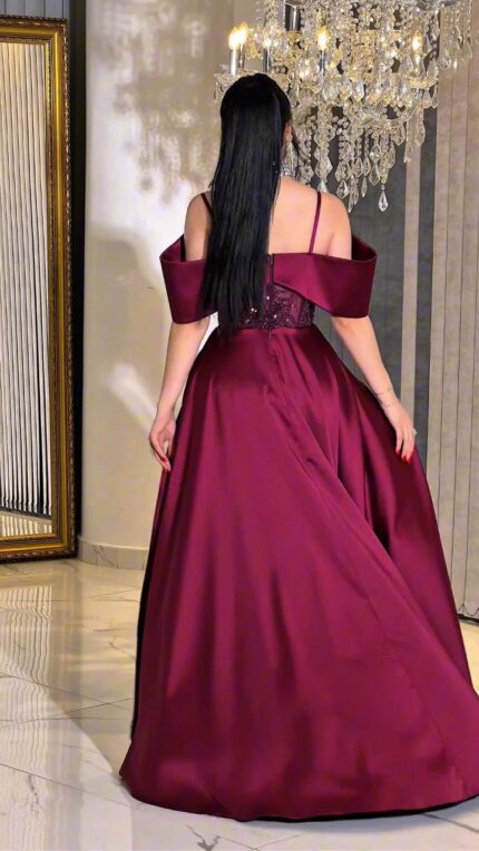 ✅ Ürün Özellikleri✅ Kumaş Türü: Saten Boy: 150 CM (Tam boy) Astar: Mevcuttur Yaka Tipi: Düşük Omuz Kalıp: Tam kalıp