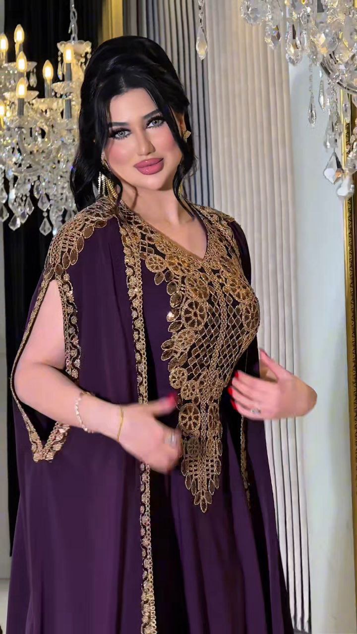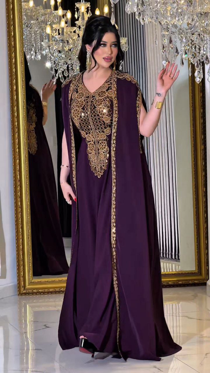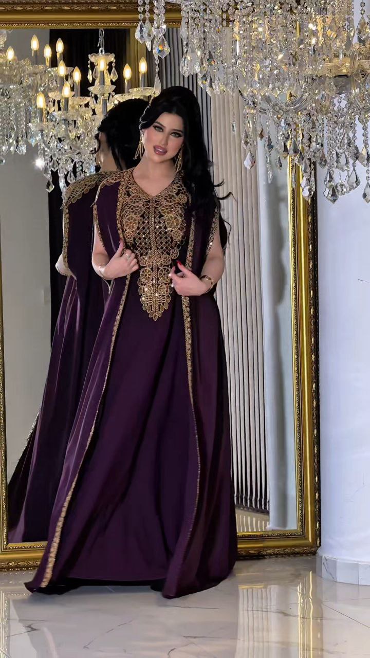Zena Fashion Altı Elbise Üstü Abaya Nakış İşlemeli Kaftan Mor