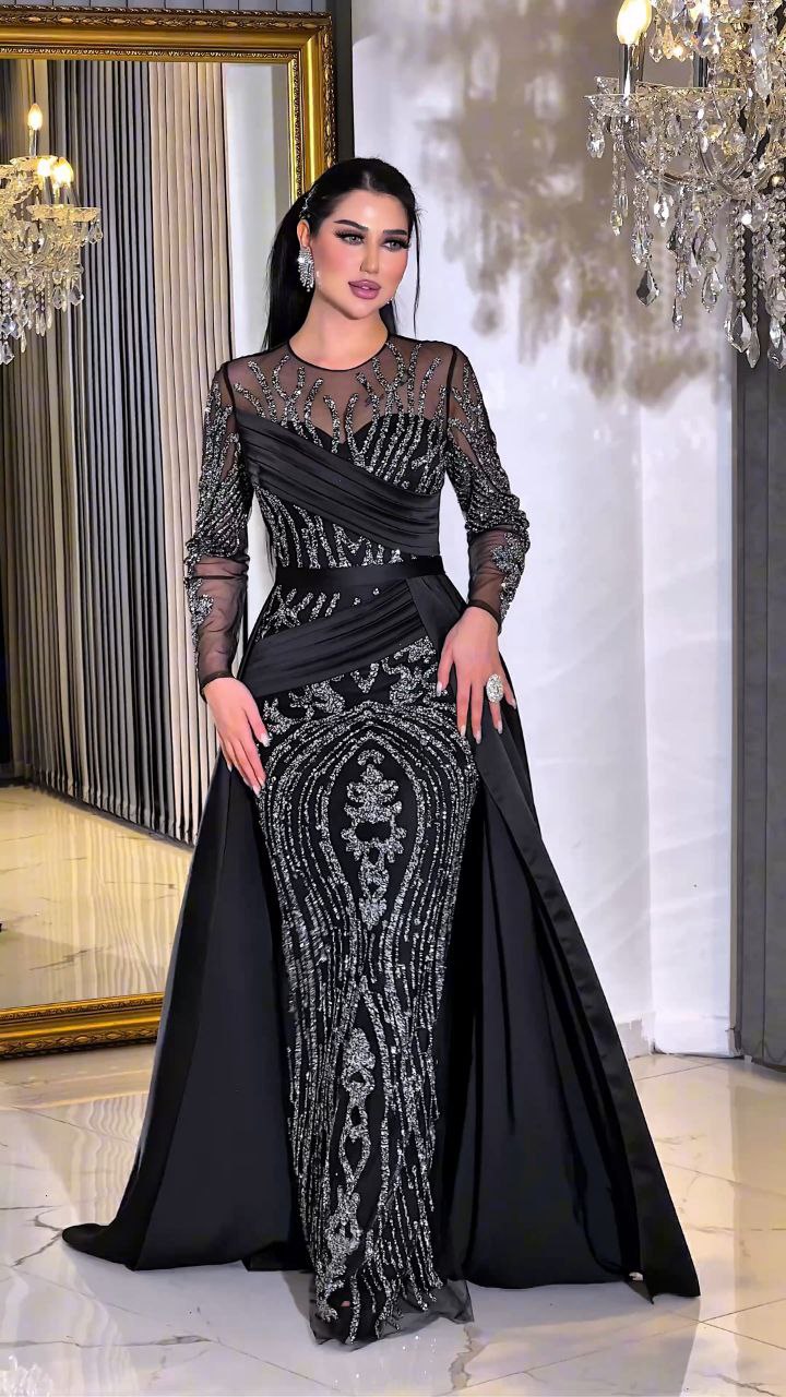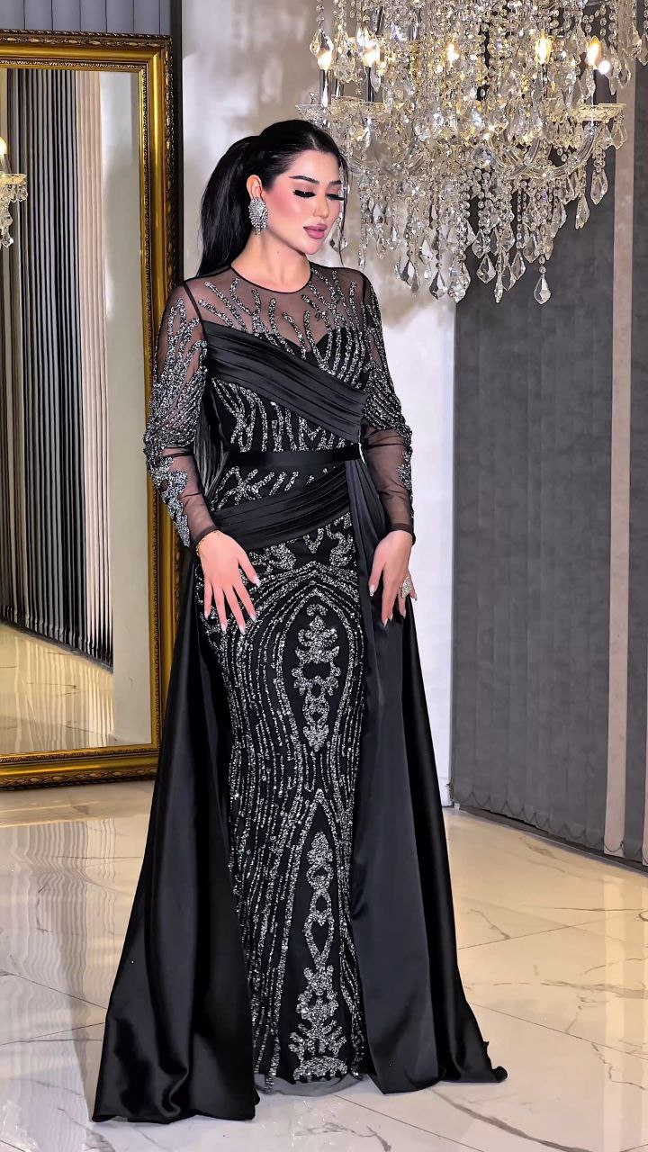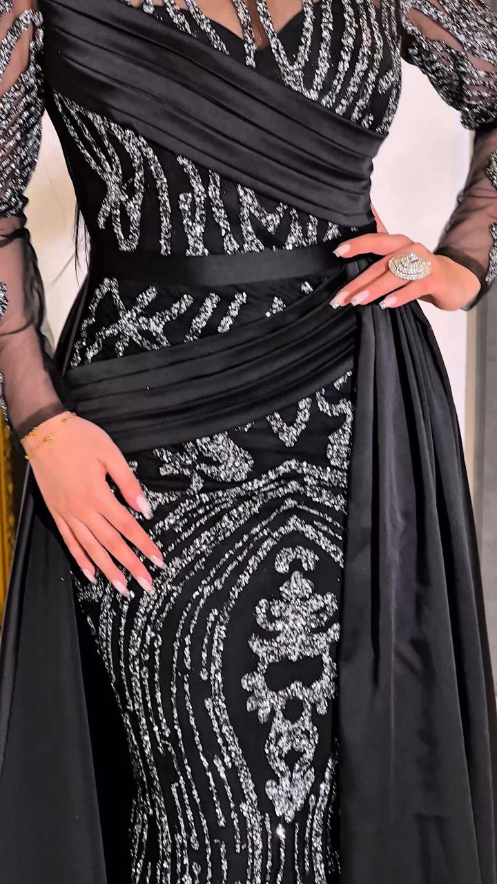 Zena Fashion Göğüs Detaylı Kuşaklı Özel Tasarım Kuyruklu Abiye Siyah