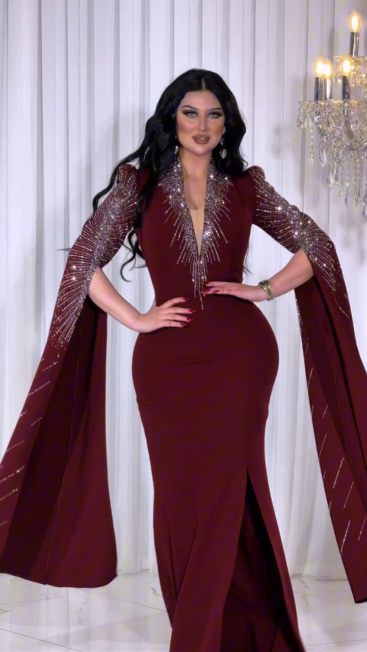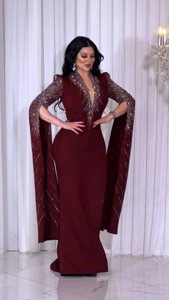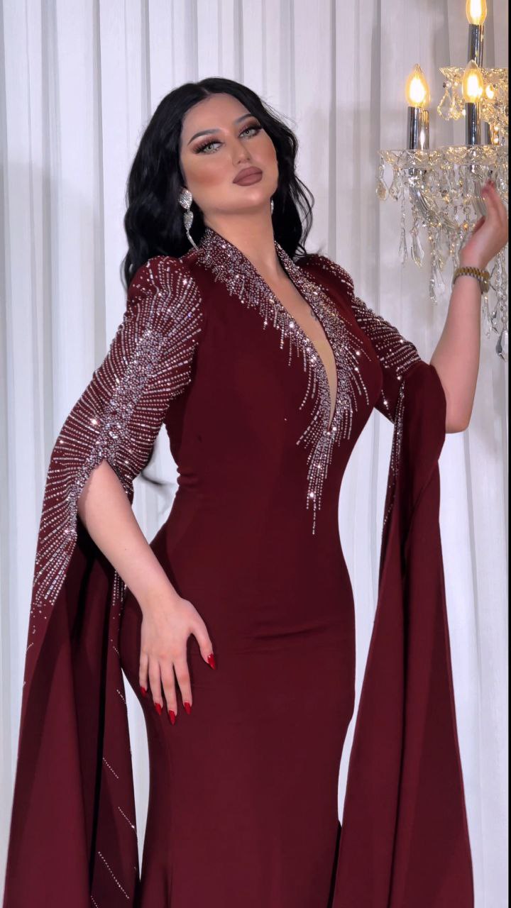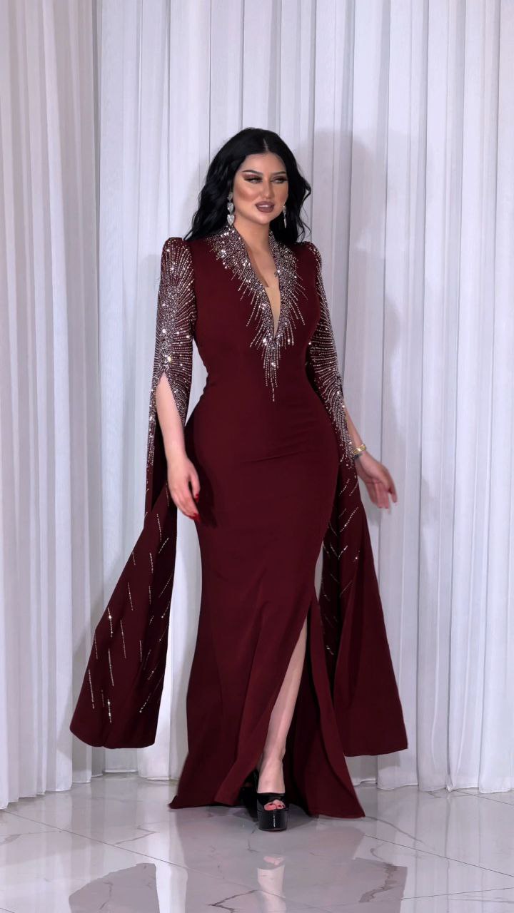 Zena Fashion Göğüs ve Pelerin İşlemeli Bordo Abiye